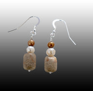 Central Australia was once an inland sea. Fossilized coral is the centrepiece of this necklace and evokes a time long past. Exquisite flower-like patterns preserved in stone. Freshwater pearls complete the effect.