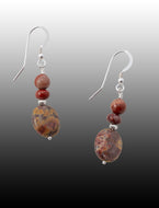 Early morning light focuses on an old river red gum on Nilpena station in the northern Flinders Ranges, where grazing land meets salt lakes and red sand hills. The jasper used in this piece has just the right colour for this startlingly beautiful landscape. The hand worked silver 'tree trunk' features on one side of this longer necklace.