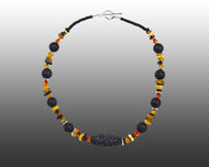 Amber and Swarovski crystals depict the fire and smoke haze drifting across the paddocks and lakes as the stubble from the harvest is burnt.