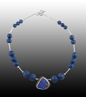 Pre-dawn over Uluru and the first hint of colour appears on the horizon while stars can still be seen hovering overhead. Suzette re-creates that blue with titanium coated quartz druzies. This photo is also available as a fine art, signed, numbered edition framing.